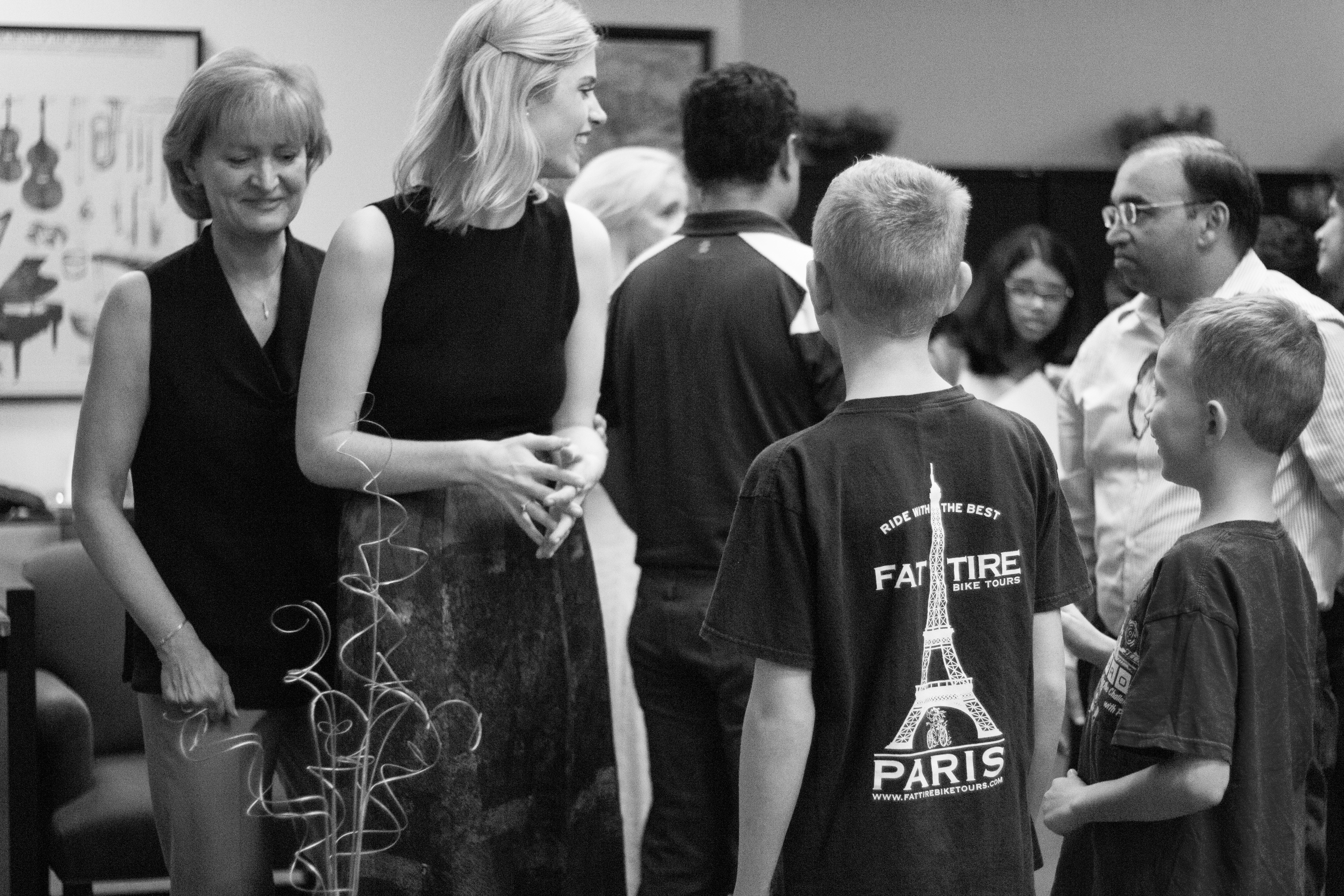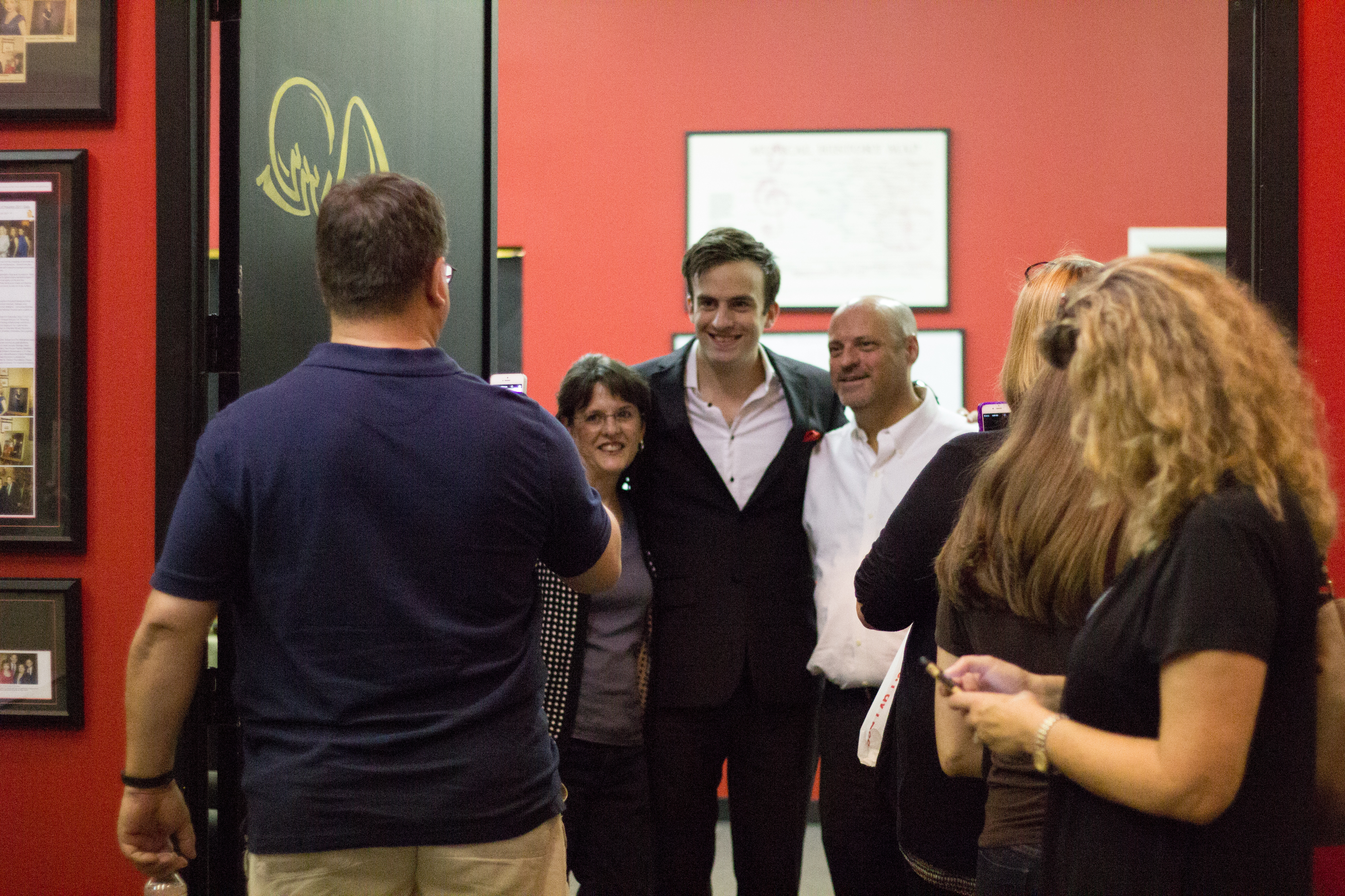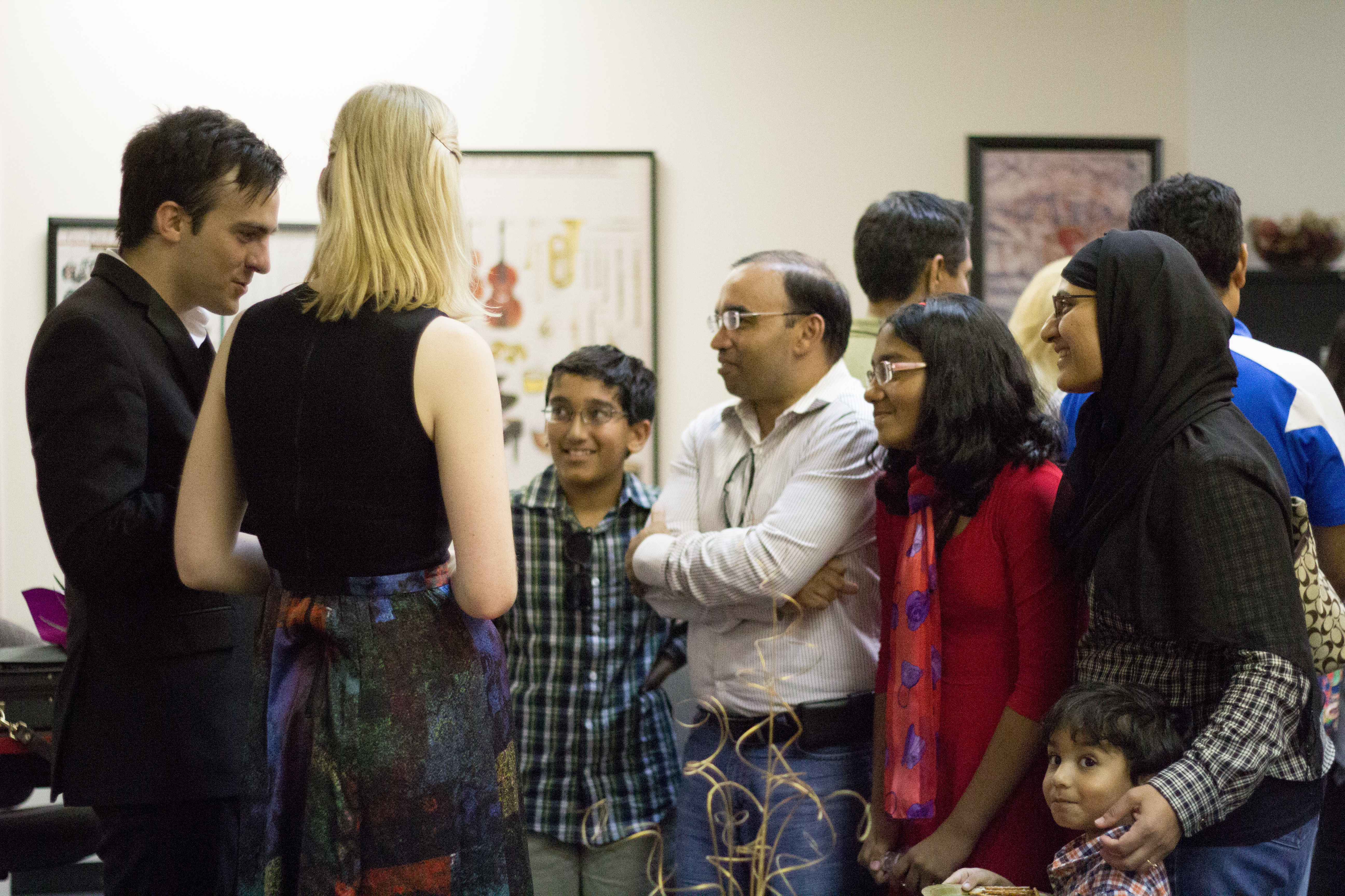 Asher, Rooh, Enara, and Rubina — all smiles as Thomas tells a story and Ayden, 3, spies the camera!Thomas with his parents and brother on his father’s birthday. PS — it’s Debussy’s birthday too!Asher, violin, congratulates Ms. HaleyThomas chats with audience membersJim Haley congratulates the Winston TrioOut for another bow!The Winston Trio