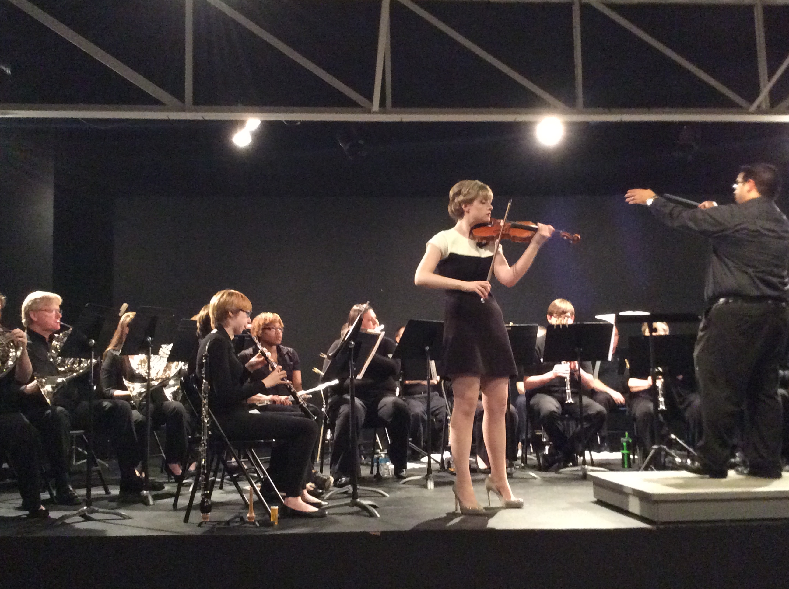 Ms. Haley rehearsing Theme from Schindler’s List (John Williams) as soloist with the Rosenberg Symphonic Band and conductor Ben Ware.